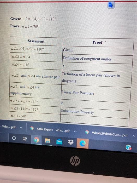 If an animal has 4 paws then it is a cat. 2020 High school algebra grades 9-12. Complete the following two-column proof.